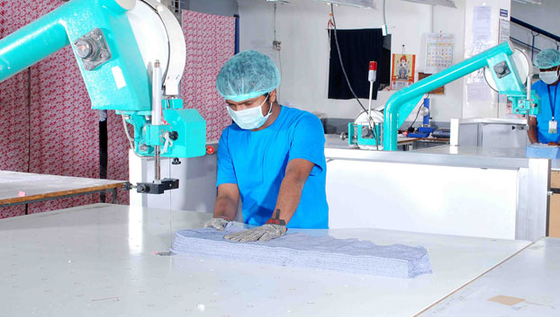 Garments are finely cut with band knife and Lay cutting machines for appropriate precision. Each fabric is accurately measured to ensure perfect fit. The cut fabrics are then sewed skillfully to create suitable garments.