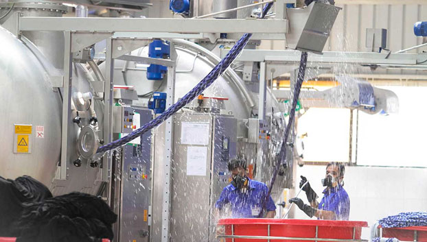 The Dyeing process is fully equipped with latest technology machines - KROMSAN - TURKEY - HTHP dyeing machines, with Baloon padding, Relax dryer machines. The dye-house has the capacity of handling 10-12 tons fabrics per day. It is supported by a latest technology effuluent treatment plant to ensures a cleaner environment.